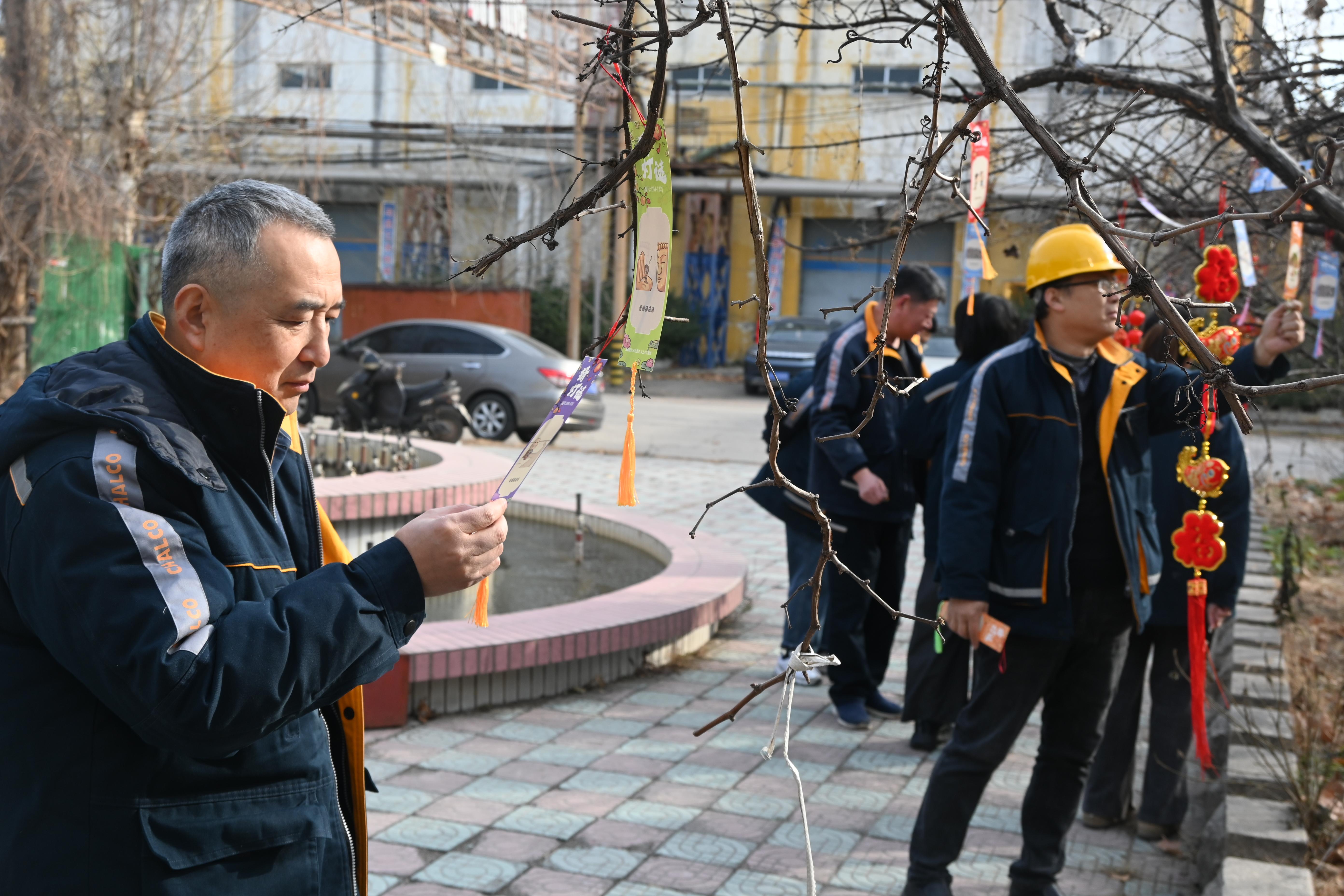 包水饺活动期间还穿插进行着猜灯谜活动。职工们热情高涨,或驻足思索、或结伴讨论,认真揣摩每一条谜题的答案,猜对谜题时脸上洋溢着喜悦的笑容。